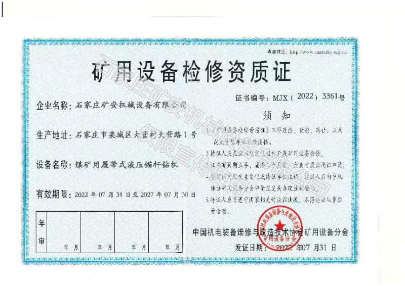 • 礦用設備檢修資質證